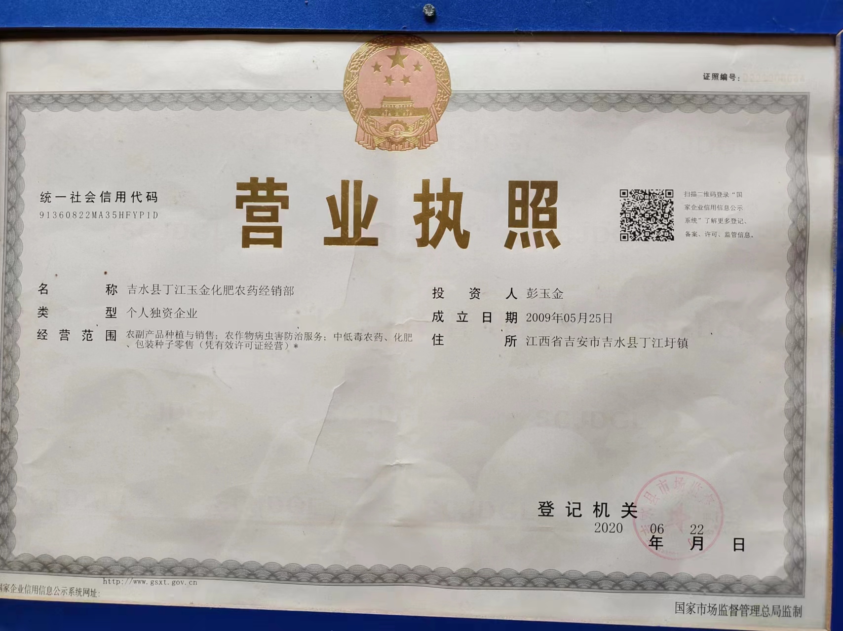 服务主体 吉水县丁江玉金化肥农药经销部